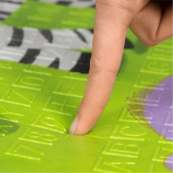 Eén mat, dubbel zoveel plezier. Kleurrijke safari-dieren en een interactieve stadskaart stimuleren verhalen en fantasie.
