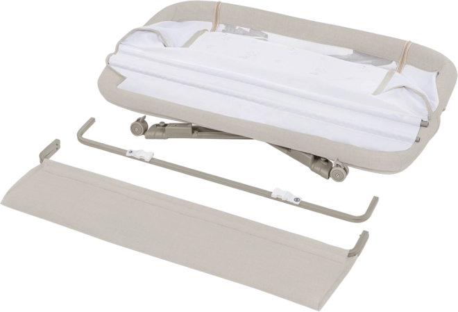 Het Lionelo Luna bedje combineert het comfort van nabijheid met praktische functionaliteit. Met riemen bevestig je het veilig aan het ouderlijk bed, de neerklapbare zijkant biedt snelle toegang tot de baby en de stevige, juiste hardheid van de matras ondersteunt een gezonde slaap vanaf de eerste dagen tot ca. 9 kg of totdat het kind zelfstandig begint te zitten.