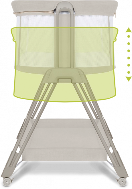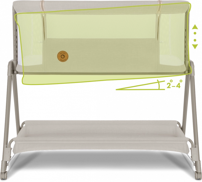 Ademende gaaswanden bevorderen luchtcirculatie en visueel contact, de hoes verwijder je eenvoudig om te wassen voor maximale hygiëne. Met 7 hoogte-instellingen stem je het bedje moeiteloos af op de hoogte van je bed; bij verkoudheid of reflux kun je de matras in een lichte helling zetten voor extra comfort.