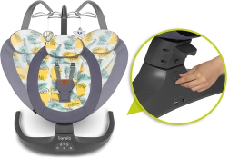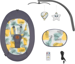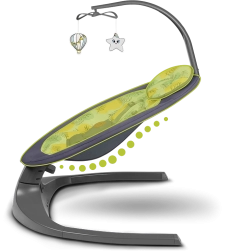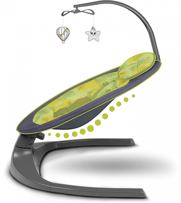 Intuïtieve bediening via het touchpanel of de meegeleverde afstandsbediening laat je 5 schommelsnelheden instellen, de timer kiezen (8/15/30 min) of 12 rustgevende melodieën afspelen. Automatische bewegingsdetectie start het schommelen zodra er beweging van het kind wordt gedetecteerd. De afneembare speelboog met 2 speeltjes stimuleert de zintuigen en vermaakt je kleintje.