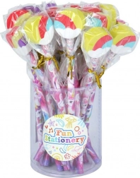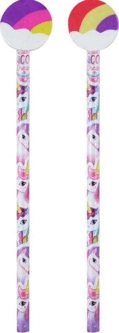Dit stijlvolle grafietpotlood met eenhoornmotief is ideaal om te schrijven en te tekenen thuis, op school en onderweg. De regenbooggum aan het uiteinde corrigeert kleine foutjes betrouwbaar, terwijl de kleurrijke versiering elke schrijftaak extra flair geeft.
