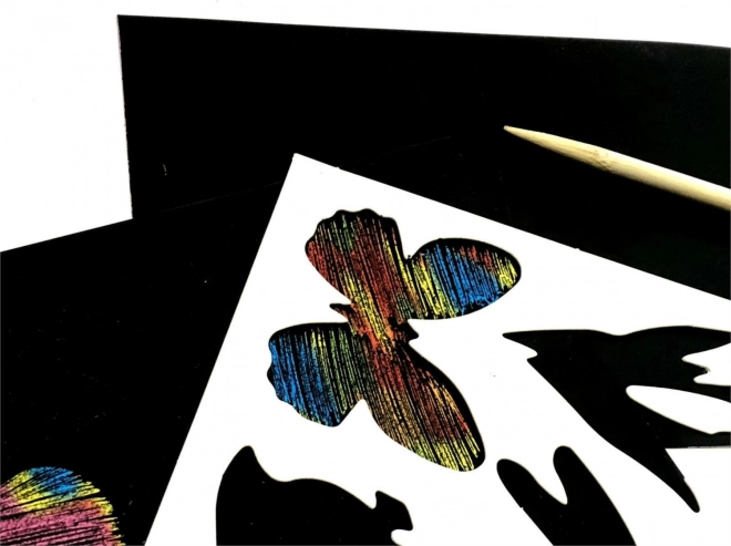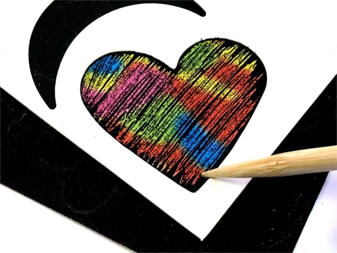 Deze creatieve set is perfect voor kleine en grote kunstenaars. De zwarte laag op het papier verbergt een kleurrijke regenboogbasis die zichtbaar wordt door te krassen met de meegeleverde houten stylus. Dankzij de sjablonen maak je eenvoudig strakke vormen en decoraties – of ga vrij aan de slag met je eigen ontwerpen.
