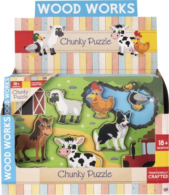 Deze prachtige houten kinderinlegpuzzel met boerderijdieren is een ideale hulp voor het ontwikkelen van verbeelding, geheugen en opmerkzaamheid bij kinderen. Het is zo ontworpen dat de houten basis en kaders het puzzelen vergemakkelijken en kinderen helpen elk dier op zijn plaats te houden.