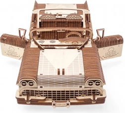 Bouw een iconische cabriolet van UGEARS en ontdek de magie van precieze houten mechanica. Het model van triplex bevat 739 onderdelen, hoge moeilijkheidsgraad en een indrukwekkend aantal functionele details: bestuurbare wielen, een opwindmotor met rijfunctie, een versnellingsbak met vrijloop en achteruit, geveerde wielophanging, werkende ruitenwissers, uitschuifbare ruitjes en neerklapbare achterbank.