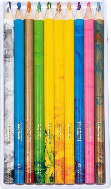 Driehoekige kleurpotloden ASTRA Rainbow High Jumbo in een set van 10 stuks bieden uitstekende kwaliteit en heldere, intense kleuren. Dankzij de ergonomische driehoekige vorm liggen ze perfect in de hand voor zowel kinderen als volwassenen. Ze zijn zacht, stoffen niet, vlekken niet en zijn gemakkelijk te slijpen, geschikt voor zowel rechts- als linkshandigen.