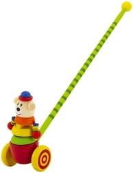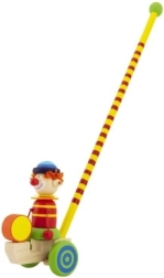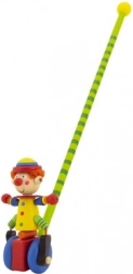 Ontdek het plezier van de eerste stapjes met de houten duwstok met clown. Dankzij het glad afgewerkte hout en de stabiele wieltjes is het speeltje gemakkelijk te bedienen en nodigt het uit tot bewegen. Bij het duwen beweegt de clown vrolijk mee, wat kinderen motiveert om verder te lopen en te spelen.