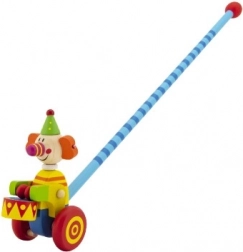 Vrolijke houten duwstok met een clownfiguur die elke stap laat dansen – bij het bewegen beweegt de clown mee en vermaakt kinderen, en het speeltje werkt in beide richtingen. Ideaal voor de ontwikkeling van de motoriek van kinderen vanaf 12 maanden. Afmetingen 60 × 10 × 8 cm, mix van kleuren.