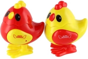 Draai aan het sleuteltje, laat los en kijk naar het vrolijke gespring van het kuikentje. Een eenvoudig mechanisme voor eindeloos vermaak.