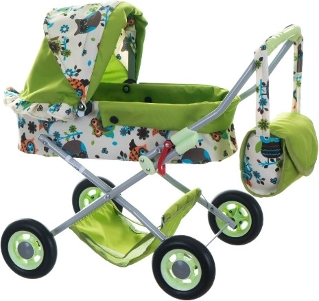 Diepe poppenwagen met mandje en tas, diverse kleuren