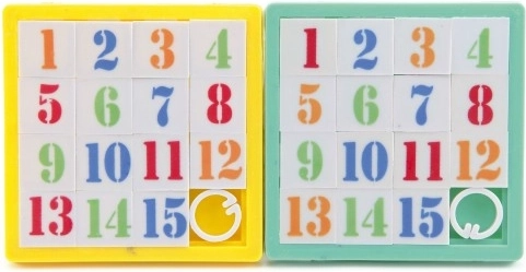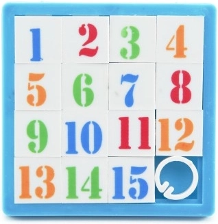 Een geliefd logisch spel voor onderweg en thuis. Vierkante tegels met cijfers zitten in een stevig frame en schuiven dankzij de groeven eenvoudig omhoog, omlaag, naar links en naar rechts. Doel: de cijfers van 1 tot 15 op volgorde leggen – een ideale uitdaging voor kinderen en volwassenen.