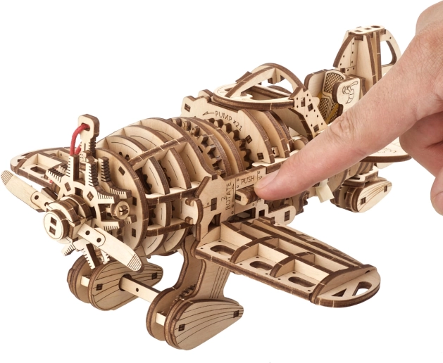Houten mechanische puzzel Vliegtuig Mad Hornet 3D van Ugears