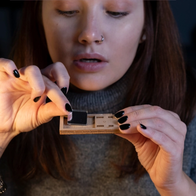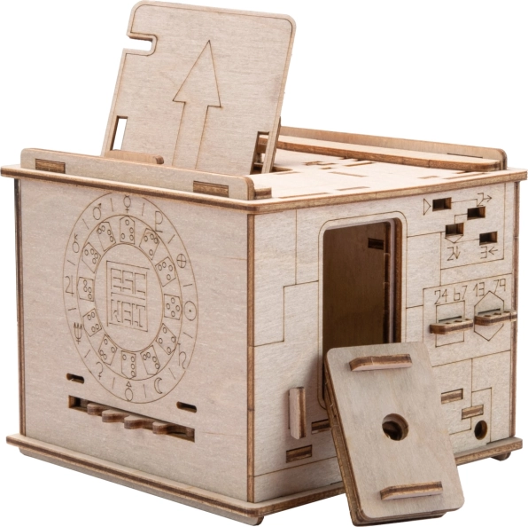 Monteer en los vervolgens dit interactieve model van berkenhout op, dat creativiteit combineert met een intellectuele uitdaging.