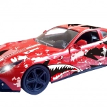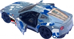 Verzamelbare metalen sportauto uit de Animals-collectie met realistische afwerking, te openen deuren en de leuke pull-back – trek en rijd-functie. Verkrijgbaar in 3 aantrekkelijke designs met haaienmotief, perfect om mee te spelen of om neer te zetten.