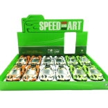 Geen batterijen nodig. Trek de auto naar achteren en laat los – hij schiet naar voren en laat een dynamische rit zien.