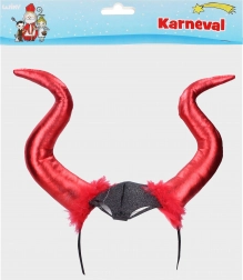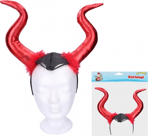Rood-zwarte duivelshoorns bevestigd aan een diadeem zorgen ervoor dat je het middelpunt van de belangstelling bent op elk carnaval. Ontwerp is geïnspireerd door een duivels thema en past perfect bij het kostuum.
