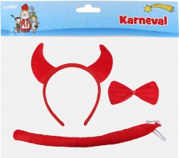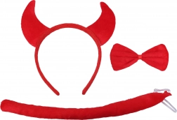 Deze set van duivelse accessoires omvat een hoofdband met horens, een vlinderdas en een staart, ideaal voor uw kostuums bij gelegenheden zoals carnaval, feesten en partijen.