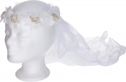 Deze stijlvolle diadeem met sluier tovert in een handomdraai een kleine prinses, fee of bruid tevoorschijn. De fijne, transparante tule golft prachtig en de bloemendetails geven de accessoire een romantische uitstraling. Dankzij het lichte materiaal en de elastische bevestiging is hij de hele dag comfortabel te dragen.