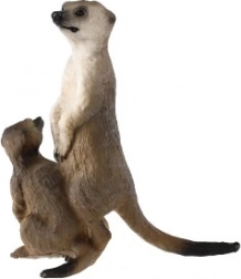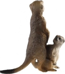 Dit zorgvuldig vervaardigde model toont een volwassen stokstaartje op de uitkijk met een jong aan zijn zijde. De natuurgetrouwe vachtextuur en natuurlijke kleuring geven het model een realistische uitstraling, waardoor het perfect is voor kinderspel, schoolprojecten en als stijlvolle decoratie.