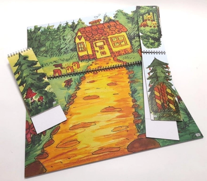 Onderdeel van de set zijn 11 dubbelzijdige of gepaarde scènes op ringband met vloer: in het kasteel / voor het kasteel, voor het huisje / in het huisje, peperkoekhuisje / in het peperkoekhuisje, in het bos / bij de grot, in de hel / bij de vijver, in de vijver. De poppen omvatten de koninklijke familie, helden en sprookjesfiguren – ideaal voor klassieke sprookjes.