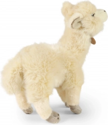 Deze zachte alpaca valt op door fijn, zeer aangenaam aanvoelend pluche en zorgvuldig uitgewerkte kenmerken. Hij maakt deel uit van een exclusieve collectie pluchen knuffels die focust op kwaliteit, veiligheid en respect voor de natuur.
