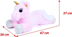 Verfijnde details zoals de gouden hoorn, de gevlekte hoefjes en de zachte manen en staart benadrukken zijn sprookjesachtige uitstraling. Het royale formaat van 70 cm biedt volop ruimte om te knuffelen en geeft kinderen een gevoel van geborgenheid en rust tijdens het uitrusten.