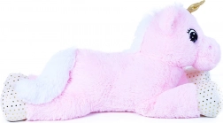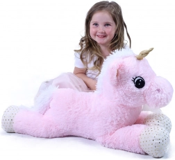Het roze lijfje, de witte manen en staart, de gevlekte hoefjes en de glinsterende gouden hoorn zorgen voor een sprookjesachtige look waar kinderen dol op zijn.