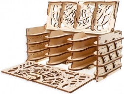 Berg je collectie stijlvol op en toon haar met de elegante houten cassette van UGEARS. Dit slimme model van multiplex biedt 12 stevige vakken voor standaard kaarten van 63,5 × 88 mm en 4 extra vakken in het deksel voor sorteren of presenteren. Dankzij het mechanische uitklappen in “trapvorm” krijg je direct overzicht over de hele collectie. De set heeft een lage moeilijkheidsgraad, bevat 77 nauwkeurig uitgesneden onderdelen en is ideaal voor iedereen die kaarten veilig en overzichtelijk wil opbergen.