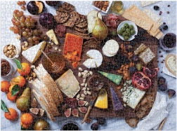 Betreed de wereld van smaak en esthetiek met een realistisch motief van een kaasplank boordevol kazen, olijven, vijgen, druiven en vers brood. De puzzel is verpakt in een stevige, herbruikbare doos van duurzame materialen met FSC-certificering. Binnenin vind je ook een folder met referentieafbeelding en informatie over de makers.
