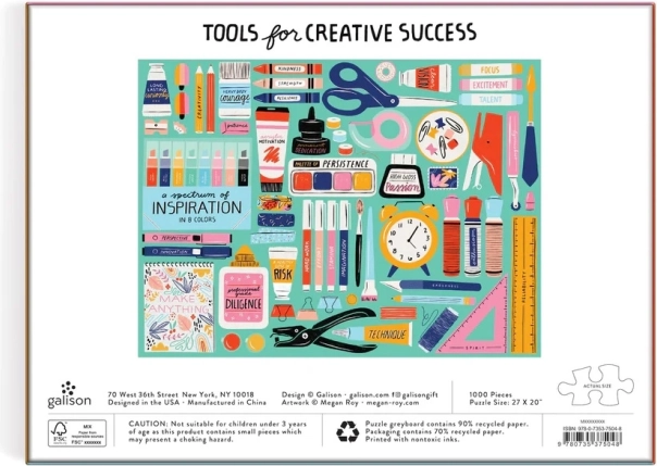 Puzzle Galison Creatieve Gereedschappen biedt een prachtig beeld van creatieve hulpmiddelen. Het samenstellen van 1000 stukjes biedt niet alleen een plezierige uitdaging, maar verbetert ook de fijne motoriek. Elk stukje is zorgvuldig uitgesneden, wat zorgt voor eenvoudig puzzelen en stevige verbinding.