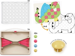 Extra grote, gladde en gemakkelijk vast te pakken pinnen maken de eerste mozaïeken eenvoudig en geven kinderen meer zelfvertrouwen bij het hanteren.