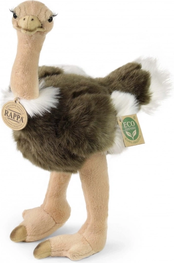Schattige pluchen struisvogel van 32 cm hoog, gemaakt van hoogwaardige, zachte vacht met vulling van gerecyclede PET-flessen. Zijn zachte lichaam, lange benen en realistische details maken hem tot de ideale knuffelpartner en een ecologische keuze voor verantwoordelijke ouders.