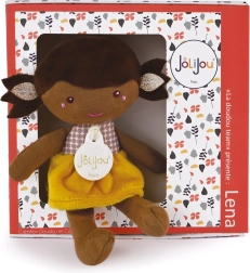 Geborduurde ogen, wangetjes en mond, samen met zachte materialen, maken van pop Léna een veilige speelgoedkeuze al vanaf de geboorte. Voldoet aan de Europese CE-veiligheidsnormen.