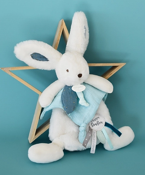 Deze cadeauset van Doudou bevat een knuffelig pluchen konijntje met een knuffeldoekje dat zowel baby als ouders blij maakt. De stijlvolle uitvoering met fijne lintjes en de moderne blauwe kleur maken het tot een mooie decoratie voor de babykamer én een favoriete knuffel.