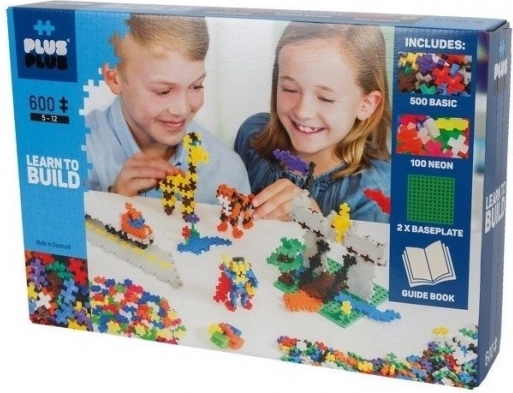 De praktische doos bevat 600 stukjes (500 basic + 100 neon), 2 bouwplaten en een geïllustreerde gids. De ideale start voor creatief bouwen en vaardigheidsontwikkeling voor kinderen van 5 tot 12 jaar.