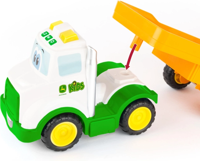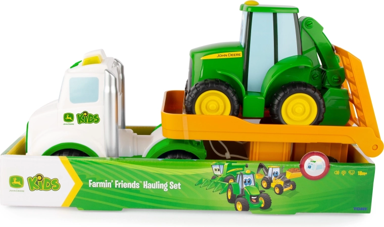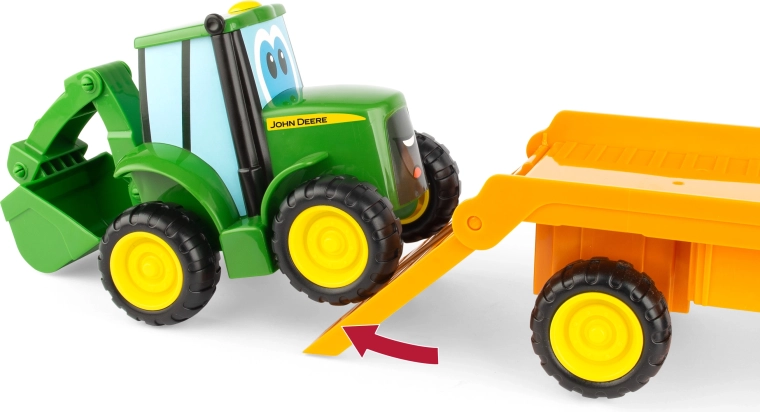 Deze speelset combineert een oplegger met oprijplaat en de vriendelijke tractor Johnny in de klassieke JOHN DEERE-kleuren. Kinderen oefenen hun fijne motoriek bij het laden en lossen en ontwikkelen hun verbeelding met boerderijrollenspel. Dankzij de lengte van 37 cm is de set goed hanteerbaar en stabiel.