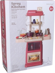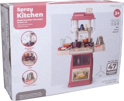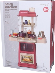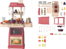 Deze interactieve keuken biedt kinderen een realistische kookervaring. Na het vullen met water stroomt er echt water uit de kraan en tijdens het koken komt er fijne waterdamp vrij, wat het spel versterkt. De kookplaat licht op wanneer ingeschakeld en de oven met openslaande deurtjes voegt een extra dimensie aan het spel toe.