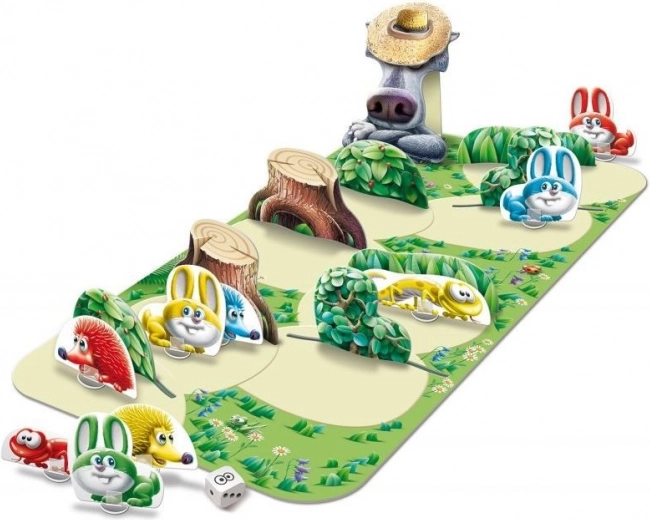 De bosdieren speelden op een open plek en merkten niet eens dat het begon te schemeren. Nu moeten ze terug naar hun huisjes. Ze proberen ongemerkt voorbij te sluipen zodat ze de wolf, die ongelukkig langs het pad in slaap is gevallen, niet wakker maken. Help ze veilig hun bestemming te bereiken.