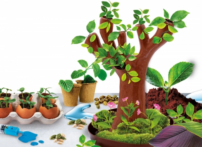 Groene wetenschappelijke set! Veel informatie en experimenten voor thuis over verschillende plantensoorten en zaden. In de verpakking zit ook een unieke bioplastische boom om te kweken, die je met turf en zaden moet vullen. Kweek frisse bladeren aan je eigen boom!