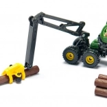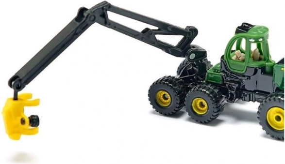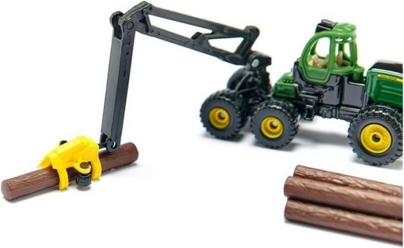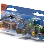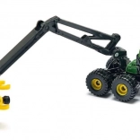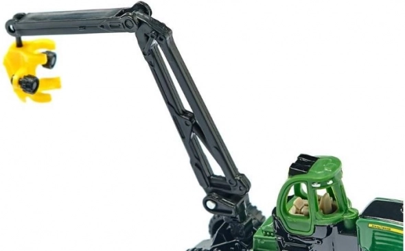De beweegbare hijsarm maakt het vrij optillen van houten palen mogelijk. Rubberbanden zorgen voor vrij bewegen op handmatig bewerkte oppervlakken. Het model is gemaakt van metaal met kunststof onderdelen. De houten paal is onderdeel van de levering. Uitstekend speelgoed voor kleine kinderen en een aantrekkelijk verzamelmodel.
