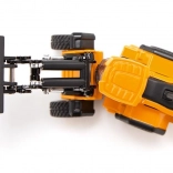 De dieplader met oprijplaten maakt het eenvoudig om de JCB-wiellader op te rijden, zodat kinderen en verzamelaars levensechte transportsituaties kunnen naspelen.
