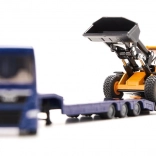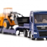 Deze gedetailleerde set combineert een blauwe MAN TGX-trekker met dieplader en een JCB bouwwiellader. De duurzame metalen (die-cast) constructie met scherpe bedrukking en vrij rollende wielen biedt zowel een authentieke look als functionaliteit. Dankzij de beweegbare bak van de wiellader en de oprijplaten van de aanhanger kunnen kinderen eenvoudig het transport van bouwmachines ensceneren.
