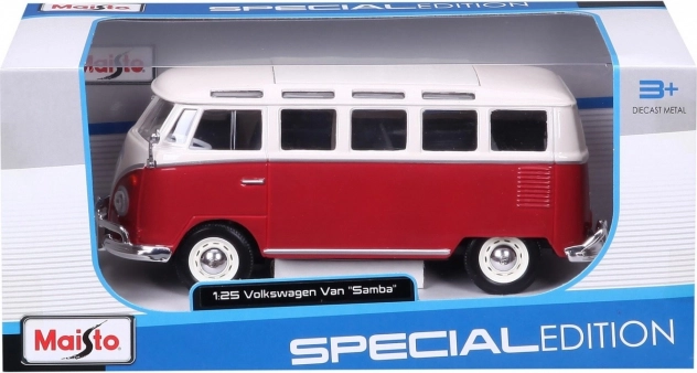 Ontdek de iconische minibus als kwalitatief metalen model in een elegante wit‑rode kleurcombinatie. Dankzij de gedetailleerde afwerking en bewegende delen geniet je van een realistische ervaring – van het openen van de deuren tot aan de motorkap. Het model in schaal 1:25 is ideaal om neer te zetten én om mee te spelen.