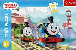 Kinderpuzzel met het thema Thomas & Friends toont de scène „Tomáš en Percy op het spoor” en bestaat uit 24 grote stukjes. Geschikt vanaf 3 jaar, gemaakt van ecologische materialen met antireflecterend gelamineerd papier voor comfortabel puzzelen.