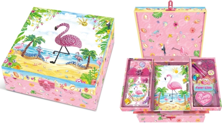 De stijlvolle doos met twee zijvakken biedt praktische opslag voor het dagboek. Ideaal cadeau voor jonge makers die graag creëren en organiseren.