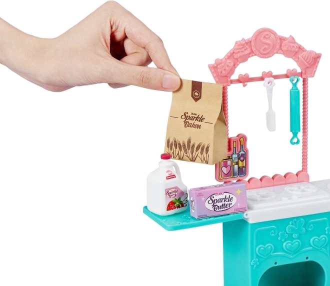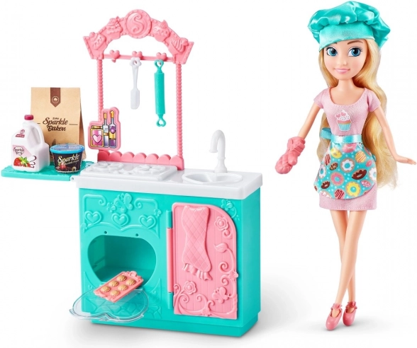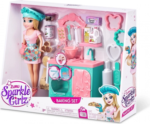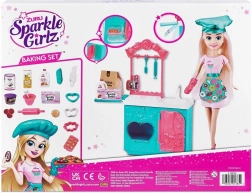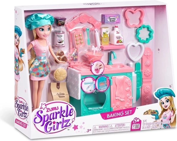 De set bevat essentiële elementen voor het spel, inclusief kleine speelgoedvoedselitems, kommen, spatels en vormpjes die het bakproces realistisch nabootsen. Open de oven, plaats de koekjes erin en doe alsof ze bakken! Dankzij de verwisselbare kleding kan de pop worden gecombineerd met andere figuren uit de Sparkle Girlz-serie.