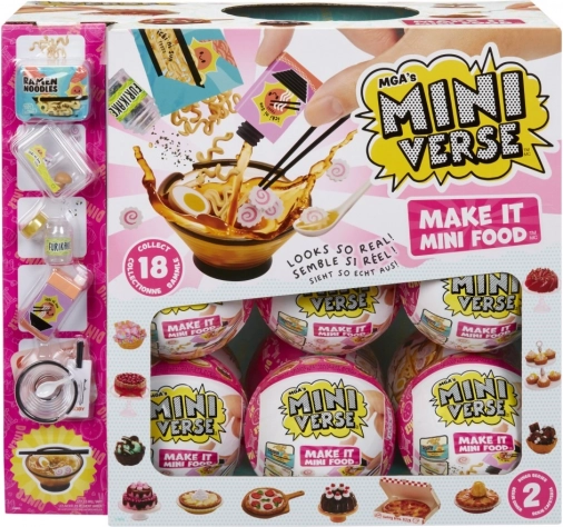 Stap in de mini-wereld van gastronomie met de verrassingsbal MGA Mini Verse. Elke verpakking biedt zorgvuldig ontworpen onderdelen om realistisch ogende mini-maaltijden en desserts te maken – ideaal voor kleine chef-koks en verzamelaars. Dankzij de doordachte details en het "Diner"-thema bedenken kinderen moeiteloos hun eigen menu, bediening en verhalen uit het mini-restaurant.