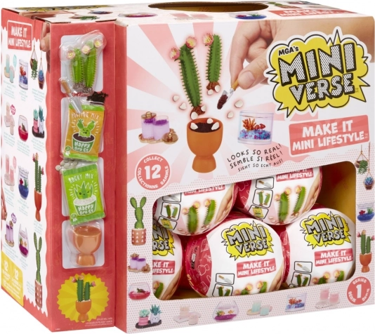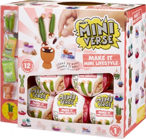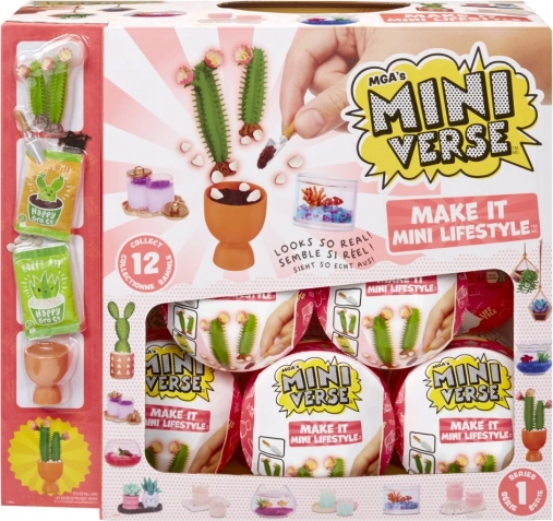 Ontdek de wereld van miniaturen met MGA's Mini Verse Make It Mini Lifestyle! In elke bal zit een verrassing en alles wat je nodig hebt om realistische mini-decoraties te maken – van mini-aquaria met visjes tot mini-cactussen met zakjes potgrond. Na het samenstellen hoef je het alleen nog onder UV-licht te laten uitharden en je hebt een verzamelstuk klaar om neer te zetten.