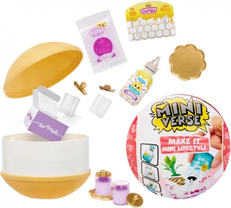 MGA's Mini Verse – Make It Mini Lifestyle is een creatieve en verzamelbare lijn waarmee je je eigen miniatuurdecoraties voor je “mini-huishouden” maakt. In de verpakking vind je authentiek uitgewerkte materialen, verpakkingen en accessoires – in totaal meer dan 60 unieke onderdelen in Serie 1. Elke verpakking is een mystery, dus uitpakspanning is gegarandeerd.
