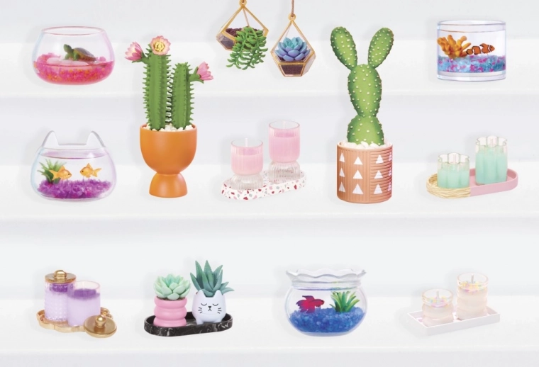 Verzamel een brede reeks mini-materialen, verpakkingen en accessoires – van schattige visjes en succulenten tot standertjes en wandplankjes.