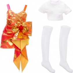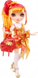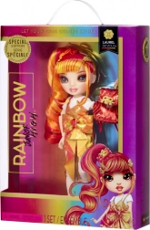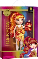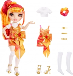 Laurel schittert in een oranje‑gouden combinatie met opvallende details die het modieuze karakter van de RAINBOW HIGH-serie benadrukken.